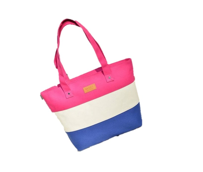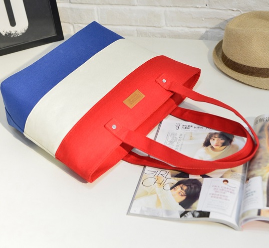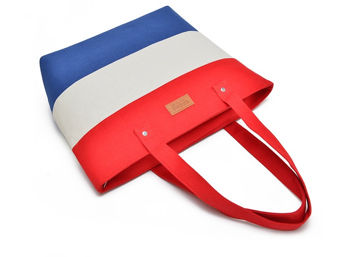 It is made from colourful striped canvas.