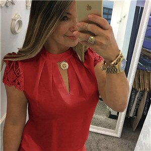 Women's Summer Blouse with Collar and Lace