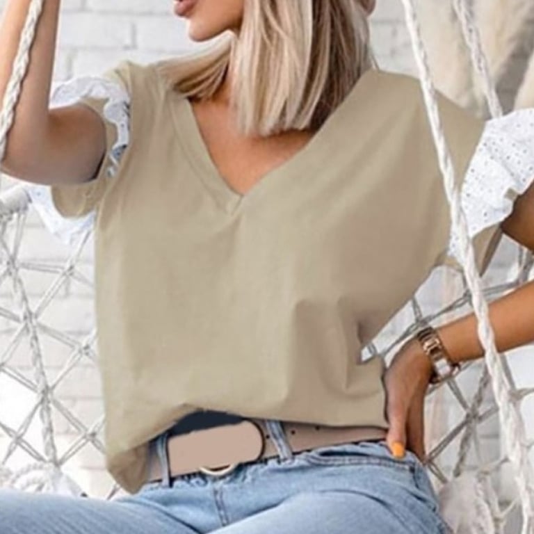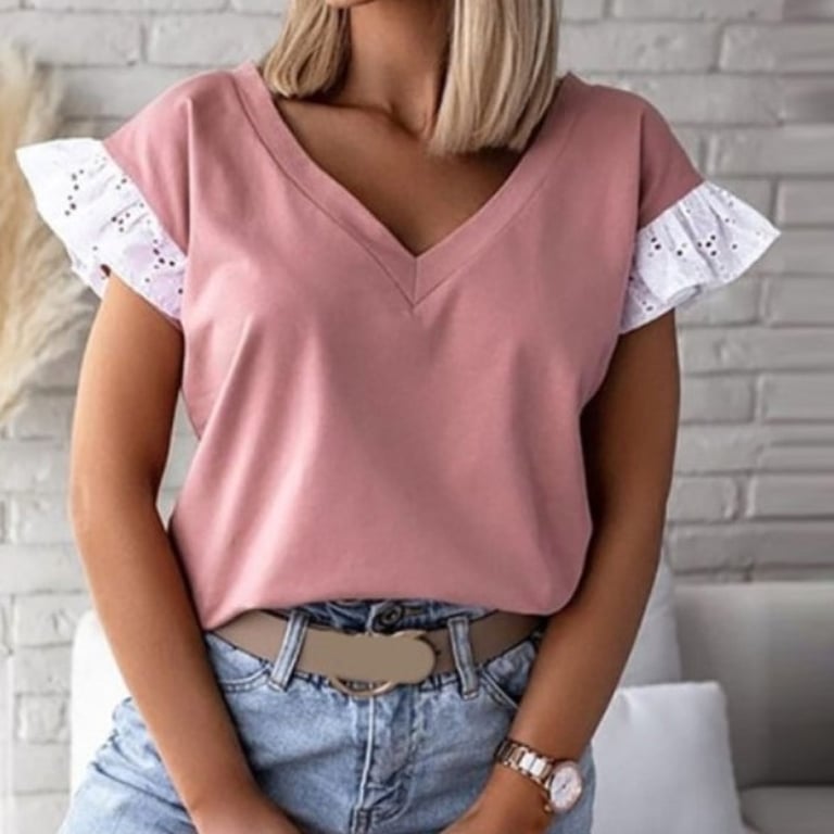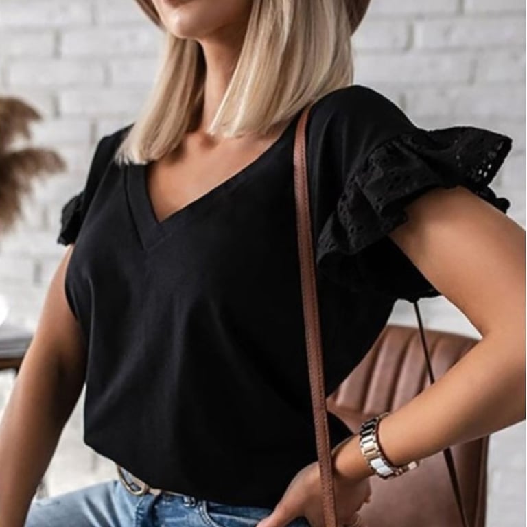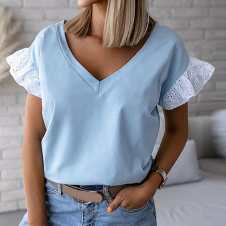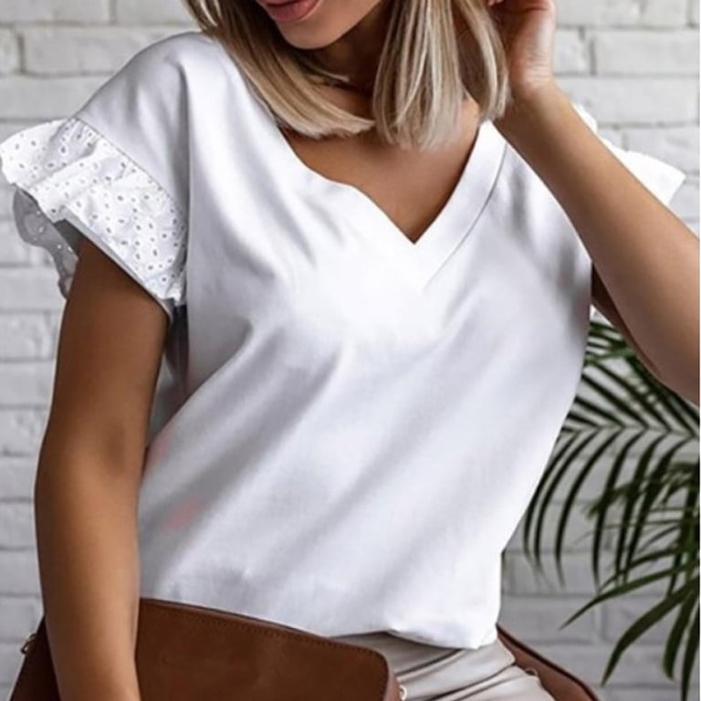 • Tags: blouse, women's blouse, short-sleeved blouse, neckline, V-neck