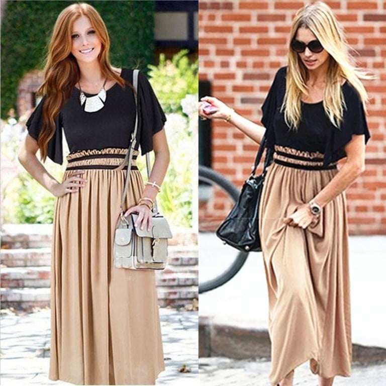 Women's Summer Long Dress with Round Neckline