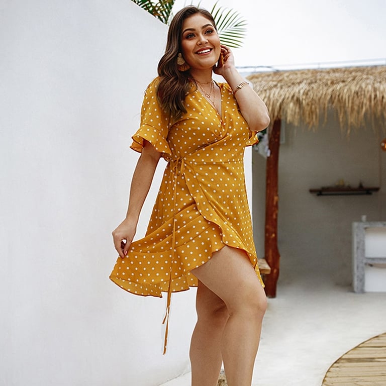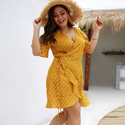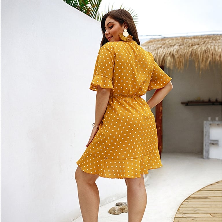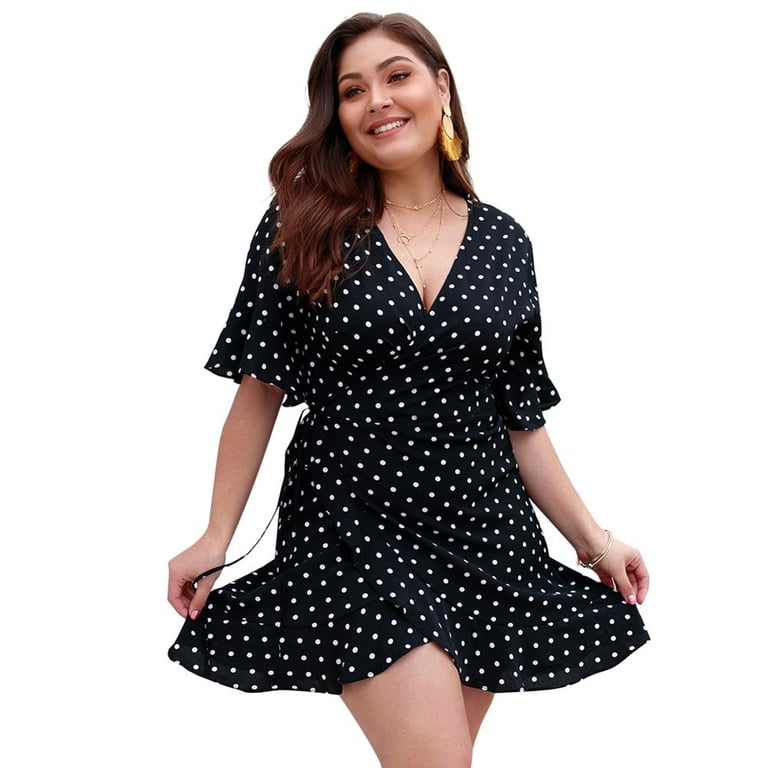 • Tags: Women's dress, summer dress, comfortable dress, short dress, plus size dress, with ruffles, polka dot dress, dress with dots, with waist tie