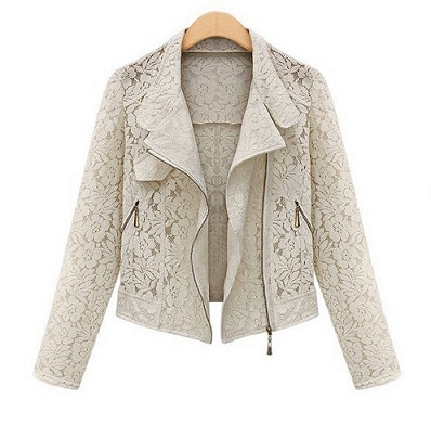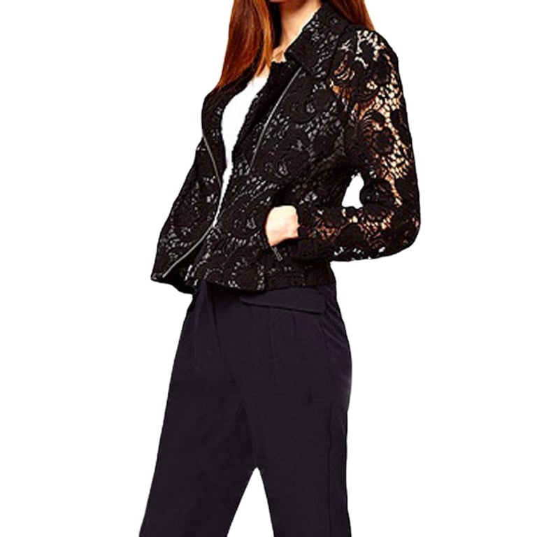 • A women's jacket enhanced with decorative lace that will complement any outfit.