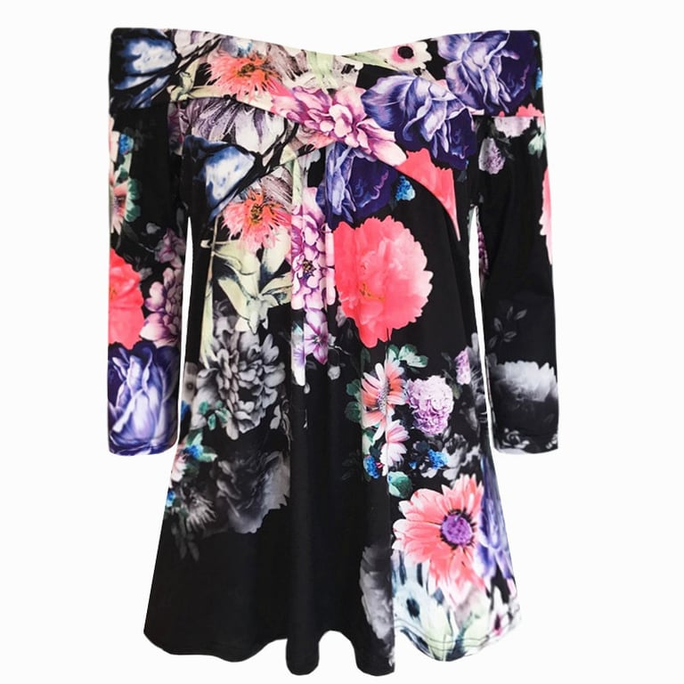 Ladies' summer tunic with floral pattern Giovanna – black