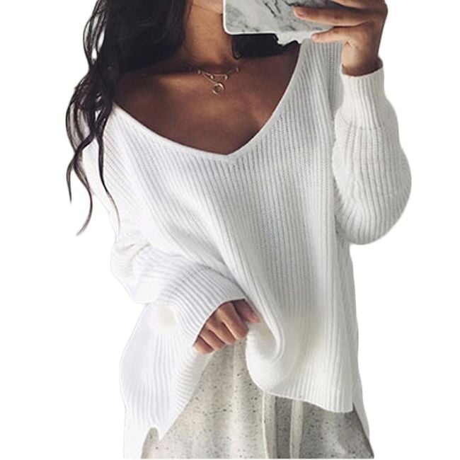 Women's casual sweater with a V-neck is available in 4 colours.