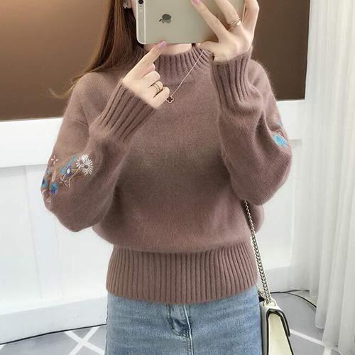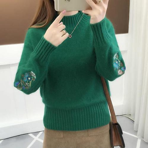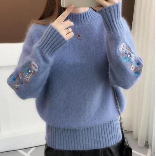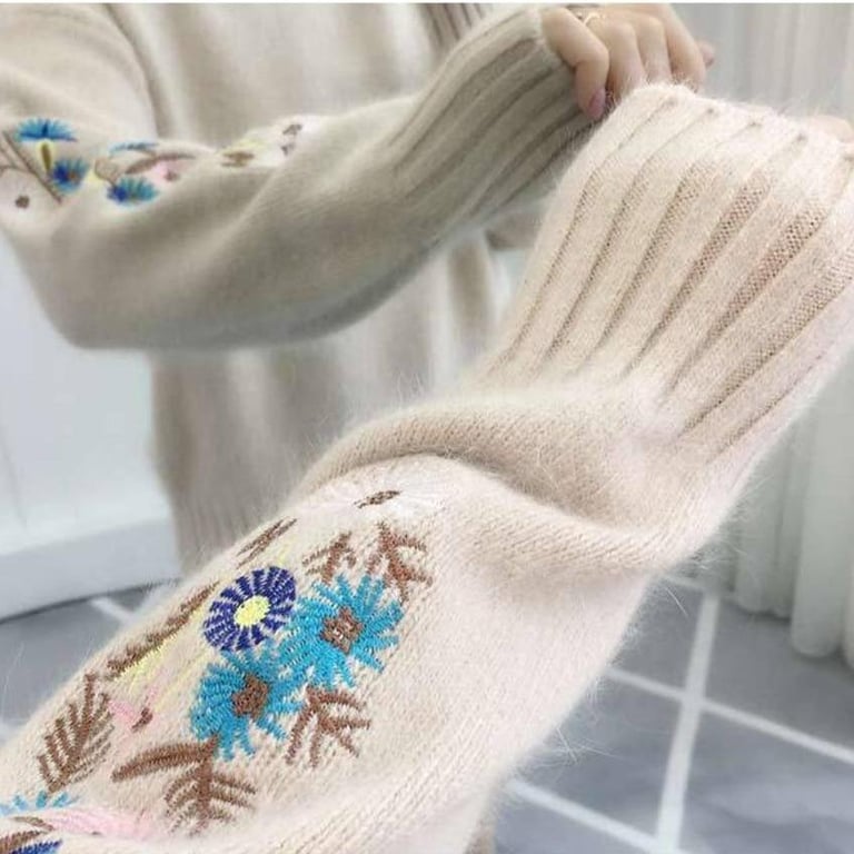 Women's sweater with embroidery on the sleeves.