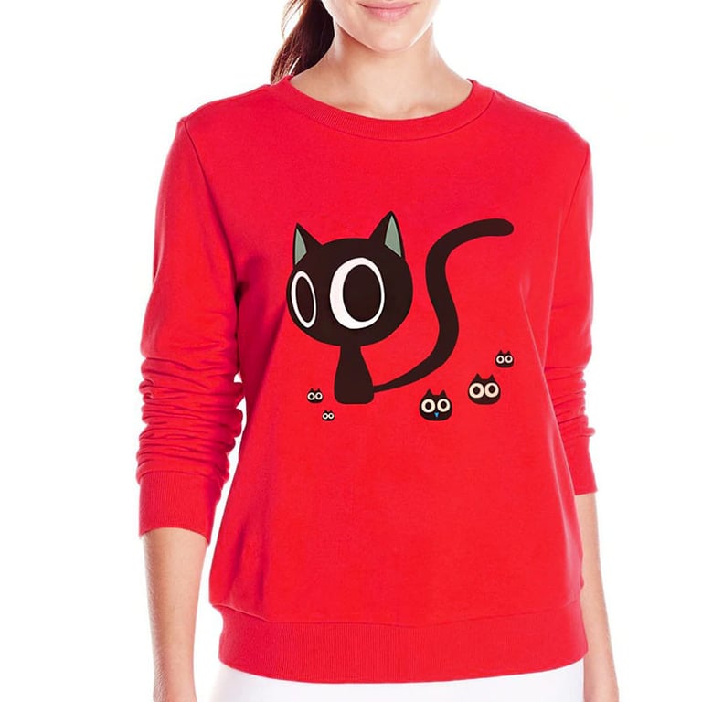 Ladies' sweater with Spiky cats – red