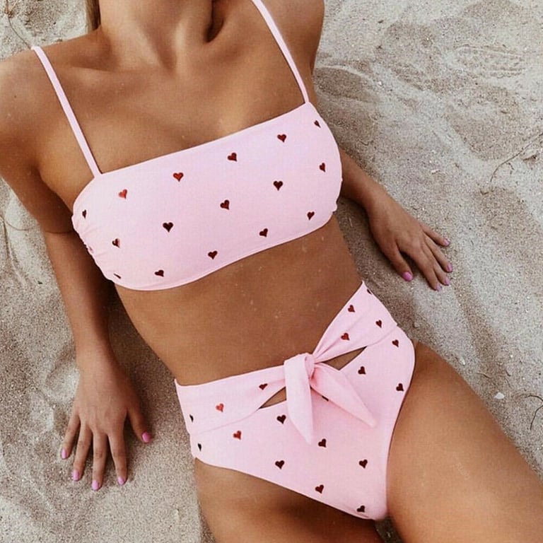 Women's two-piece swimsuit with subtle hearts.