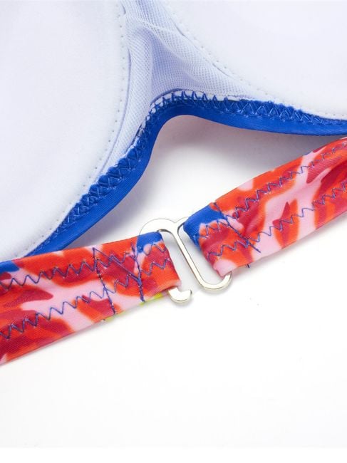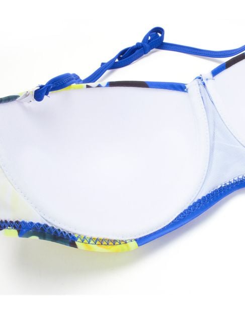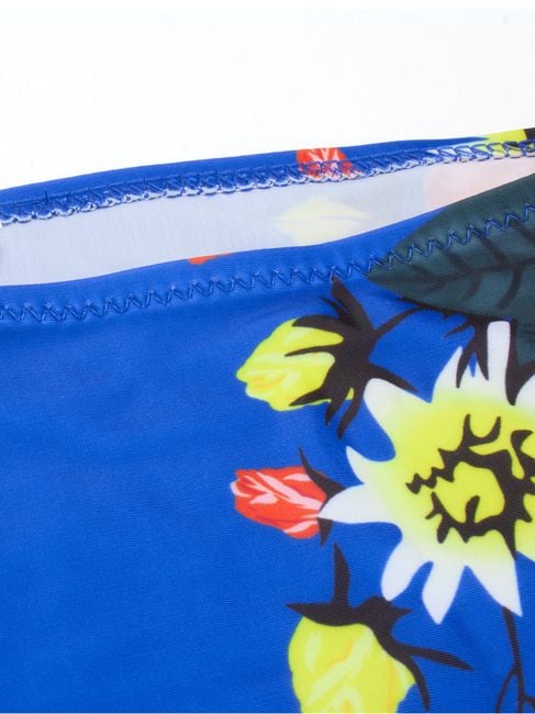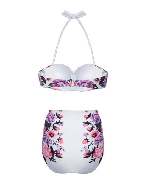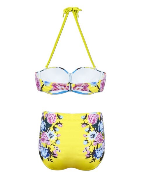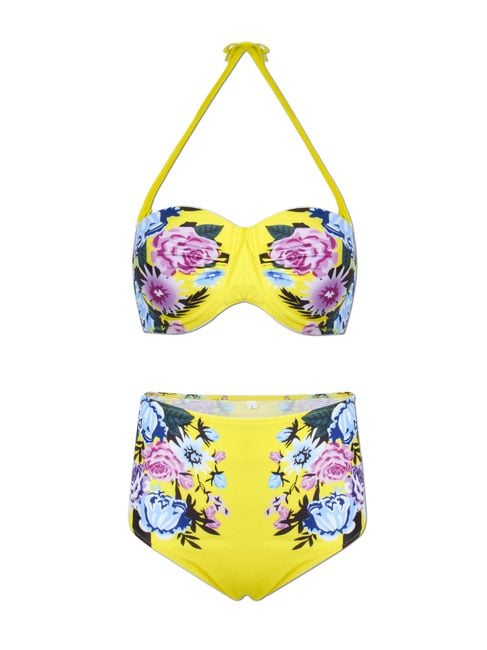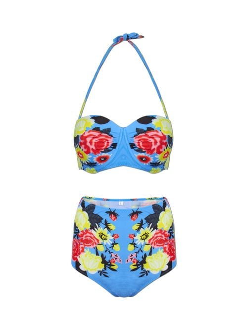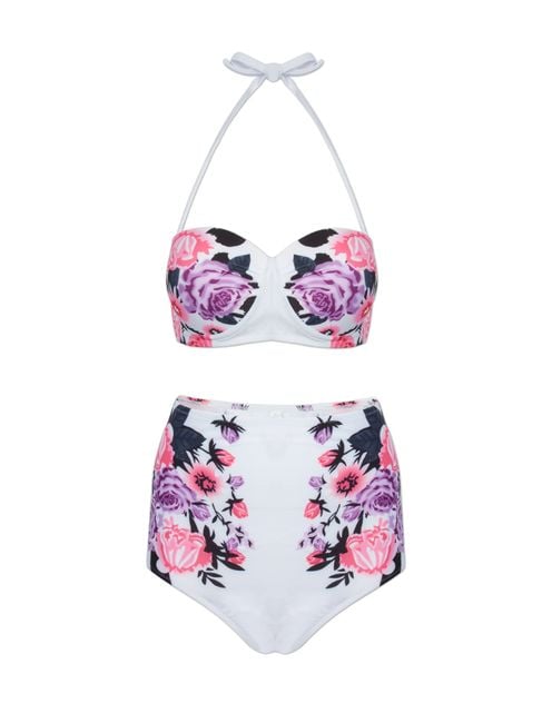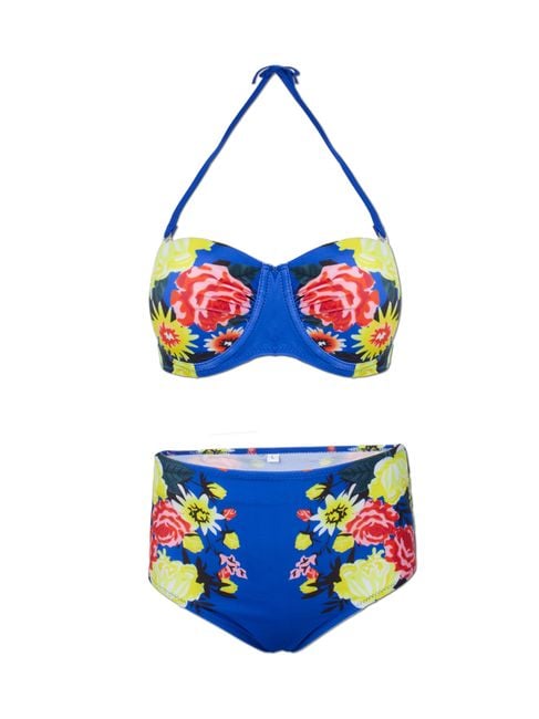 The ideal option for women who have a few extra pounds but still do not want to give up on two-piece swimsuits and modern floral prints. The spaghetti straps feature a comfortable tie at the neck.