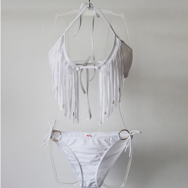 Women's swimwear with an interestingly designed top can be used by the river or at the sea. The top features fringes, which add originality to the swimsuit. It is available in six colour options, among which you are sure to find your favourite.
