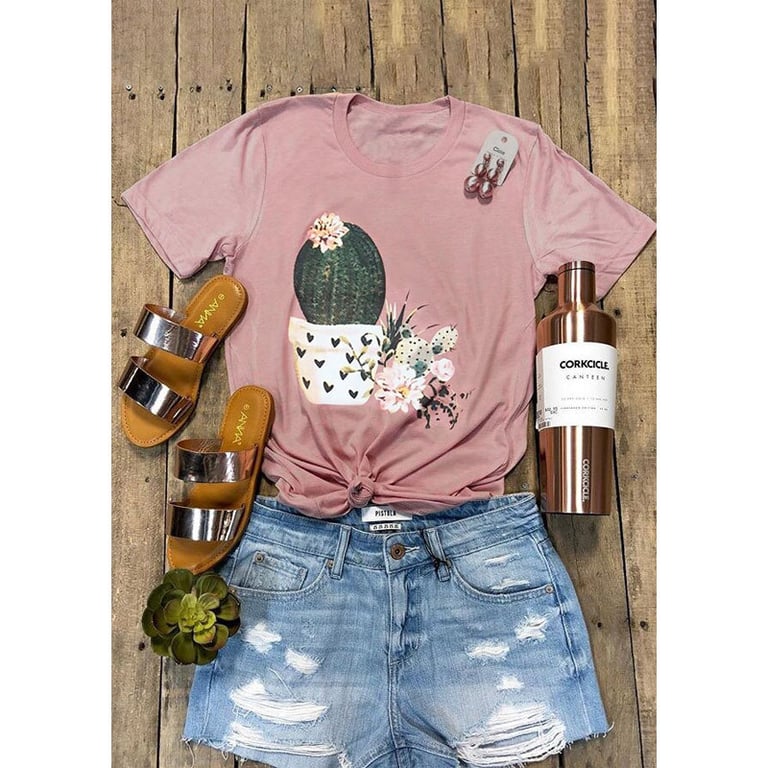 Women's short-sleeve t-shirt with a round neckline. Colourful print featuring a cactus motif. Loose straight fit.
