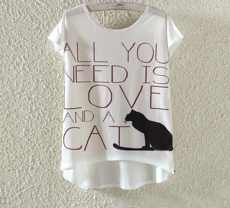 Quality t-shirt with a cute cat print.