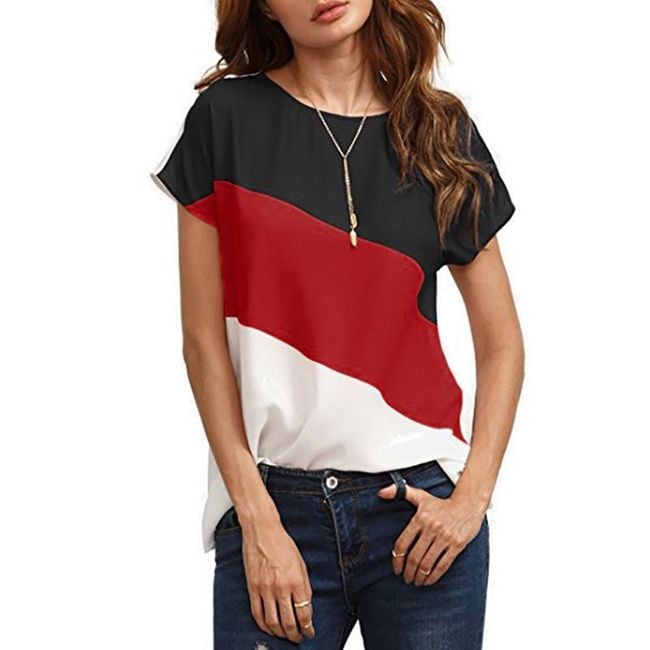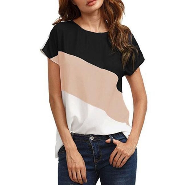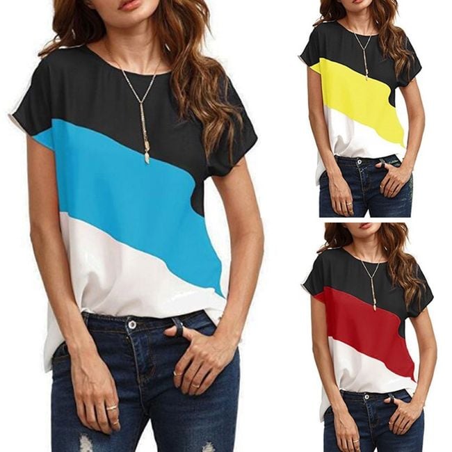 The women's loose-fitting t-shirt features short sleeves and a colourful striped design. Choose from 4 variants.
