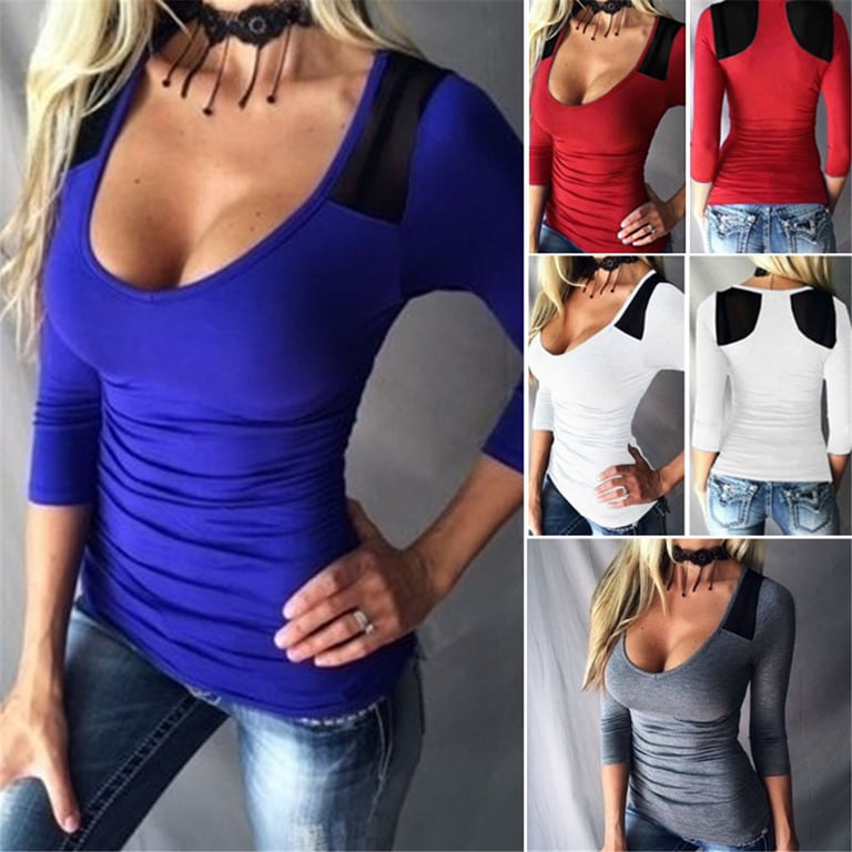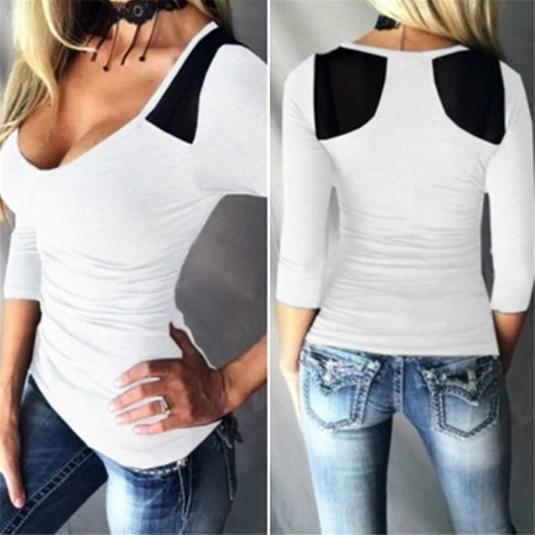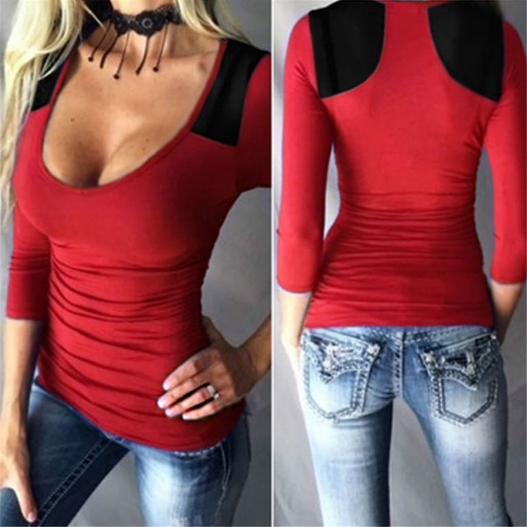 Women's long-sleeve t-shirt, stylish cut – 2 colours, deep round neckline.