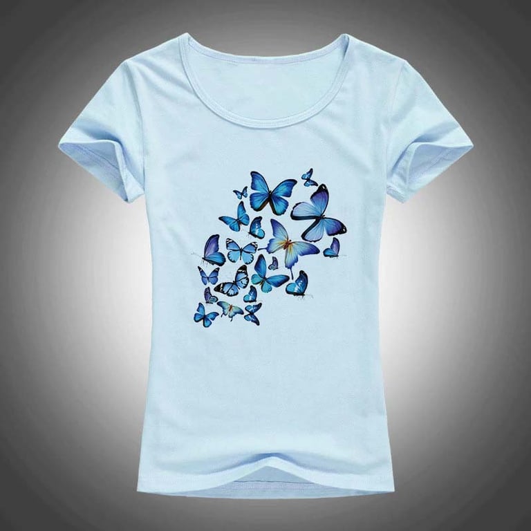 Stylish women's t-shirt with butterflies, perfect for spring and summer. The pleasant combination of colours will brighten up the entire outfit and you will look truly great. Get ready for the 2025 season.