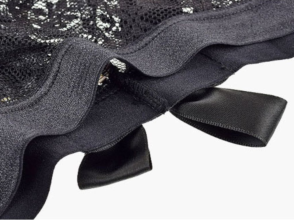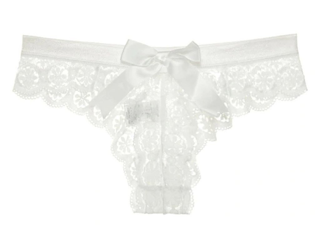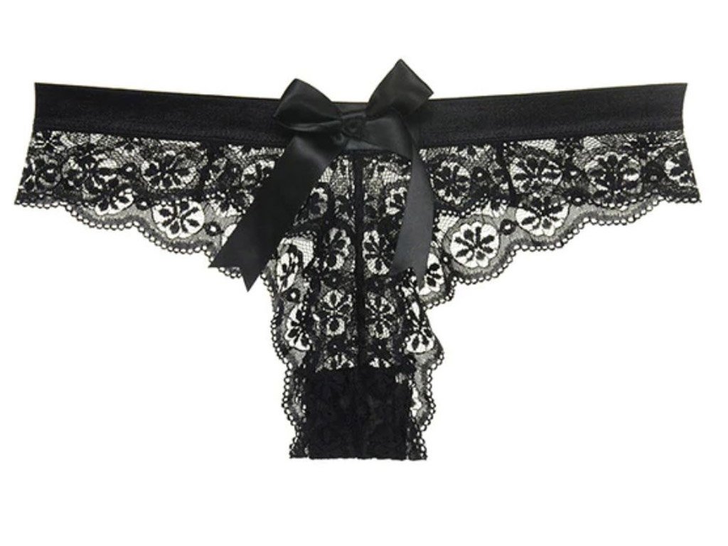 Awaken your partner's imagination with lace thongs featuring a bow and seduce the man of your dreams! Choose from two colours and four sizes.