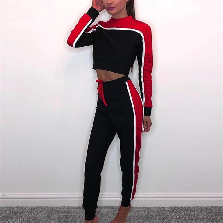 Women's tracksuit. Joggers with slim legs and an elastic waistband. Short crop hoodie with a round neckline. Available in two colour options.