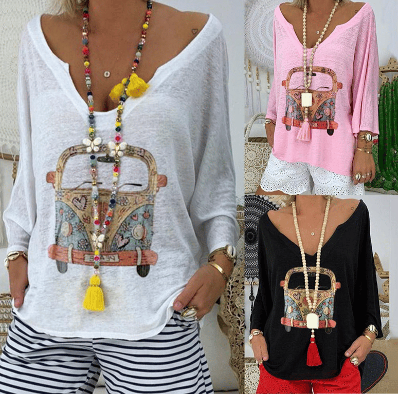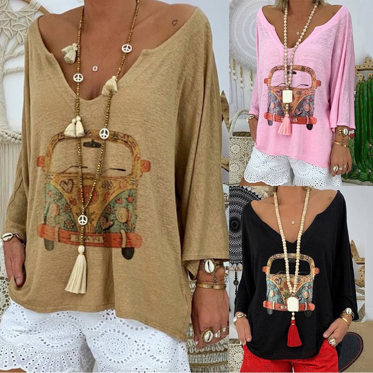 Women's Trendy Blouse with 3/4 Sleeves and V-Neck