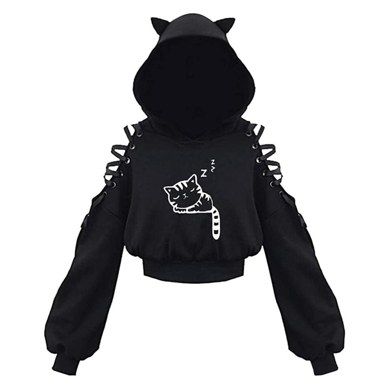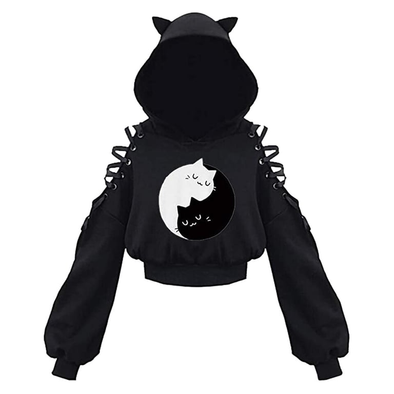 Women's Trendy Hoodie with Cat Ears and Print
