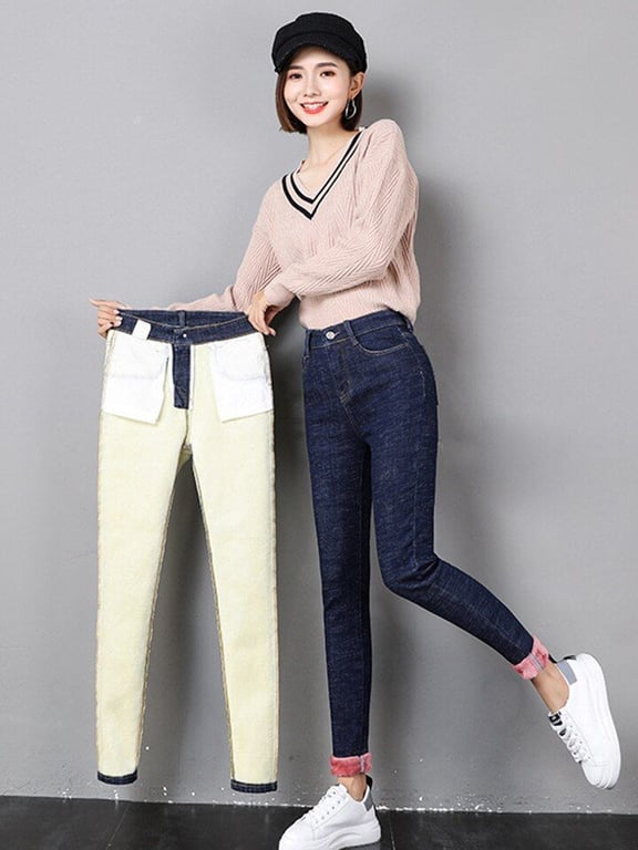 Women's Trendy Jeans with Plush Lining Tina