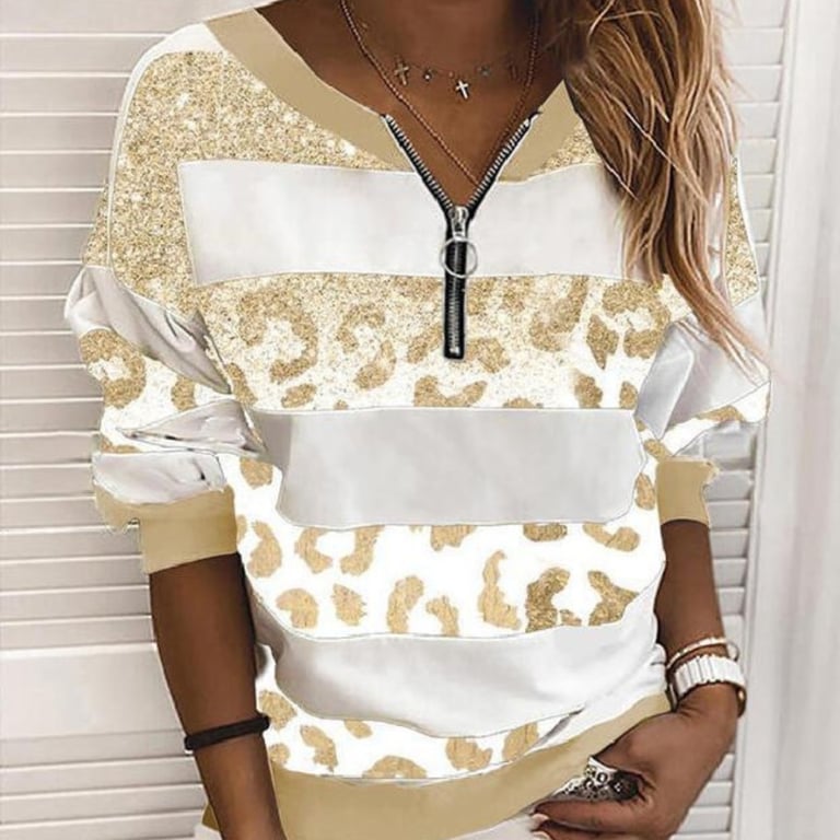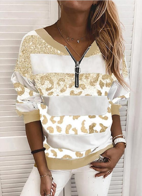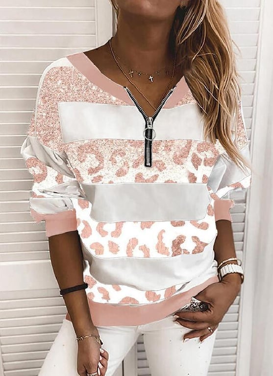 Ladies' trendy striped sweatshirt – leopard print