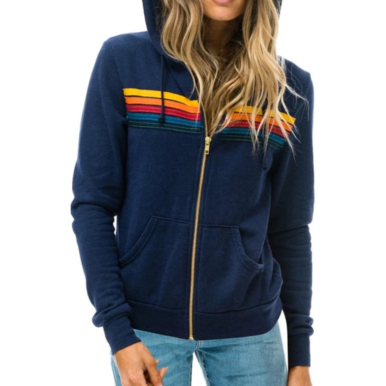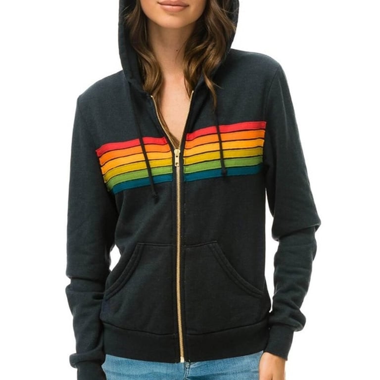 Women's Trendy Hoodie with Sewn Colourful Stripes