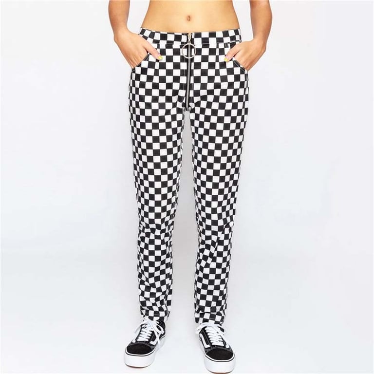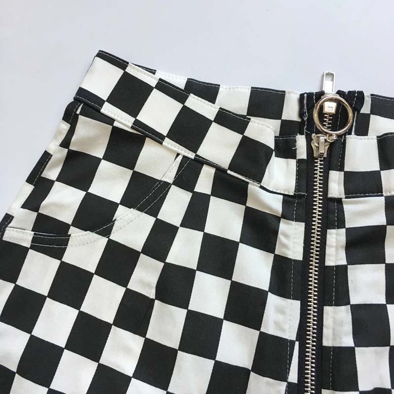 Modern trousers that will definitely make you stand out. Not only is the fabric pattern striking, but the entire model is complemented by an atypical zip placement, so if you need something unconventional, this is definitely the right choice!