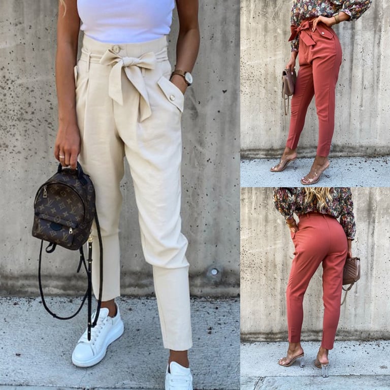 • Women's trousers with bow and high waist in two different colours