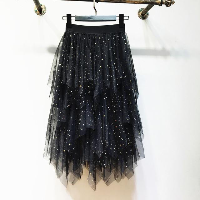 Beautiful women's tulle skirt with sparkling stars.