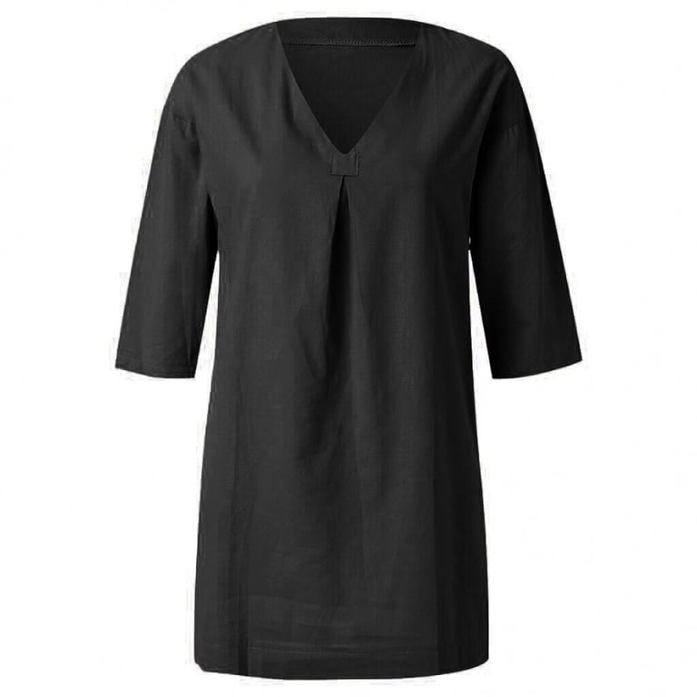 Women's long tunic blouse with 3/4 sleeves. Loose comfortable fit with a V-neckline. Available in multiple colour options.