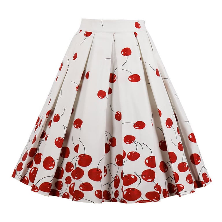 Women's vintage style skirt with a high waist. Wide balloon cut. Colourful print. Available in multiple variants.