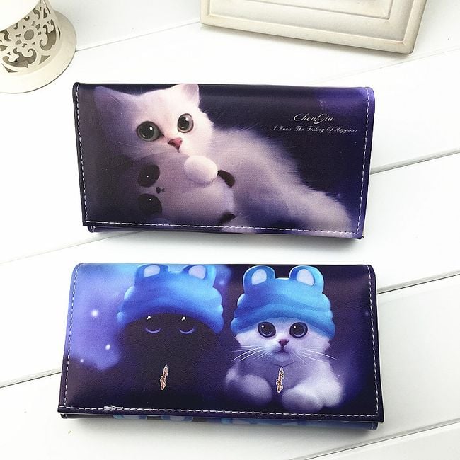The women's wallet is adorned with a cat print. Choose from 3 colours.