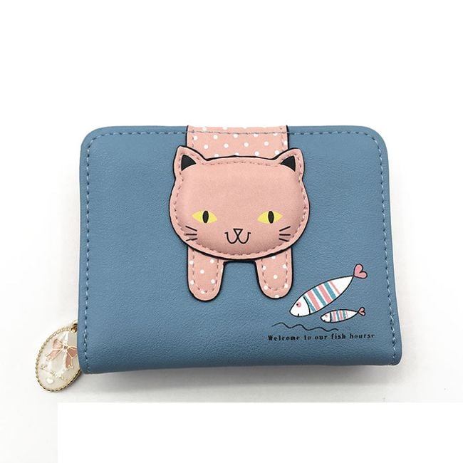 The ladies' wallet with a cat print serves as a lovely accessory.