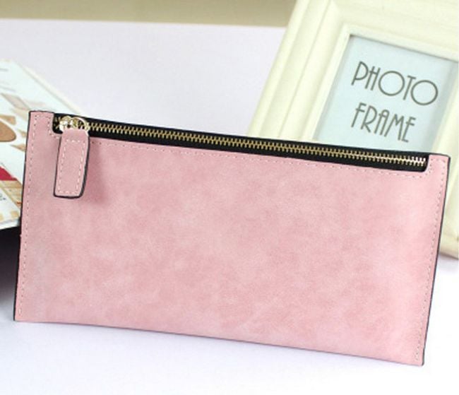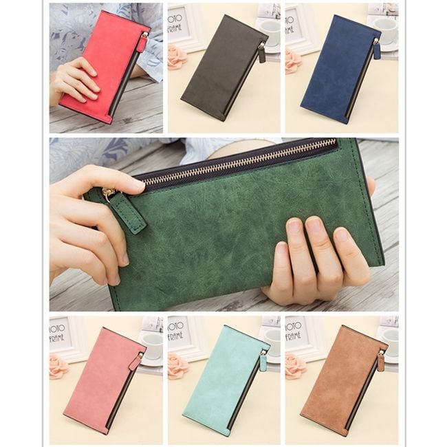 Women's wallet made of synthetic leather features a zip. Choose from 6 variants.