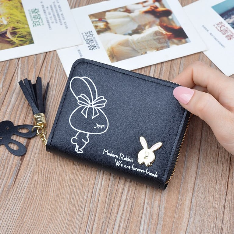 Women's faux leather wallet with a zip fastening. Print with a bunny. Card slots. Coin pocket. Available in multiple colour options.