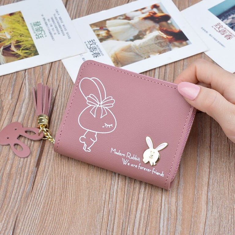Women's faux leather wallet with a zip closure. Print with a bunny. Card slots. Coin pocket. Available in multiple colour variants.