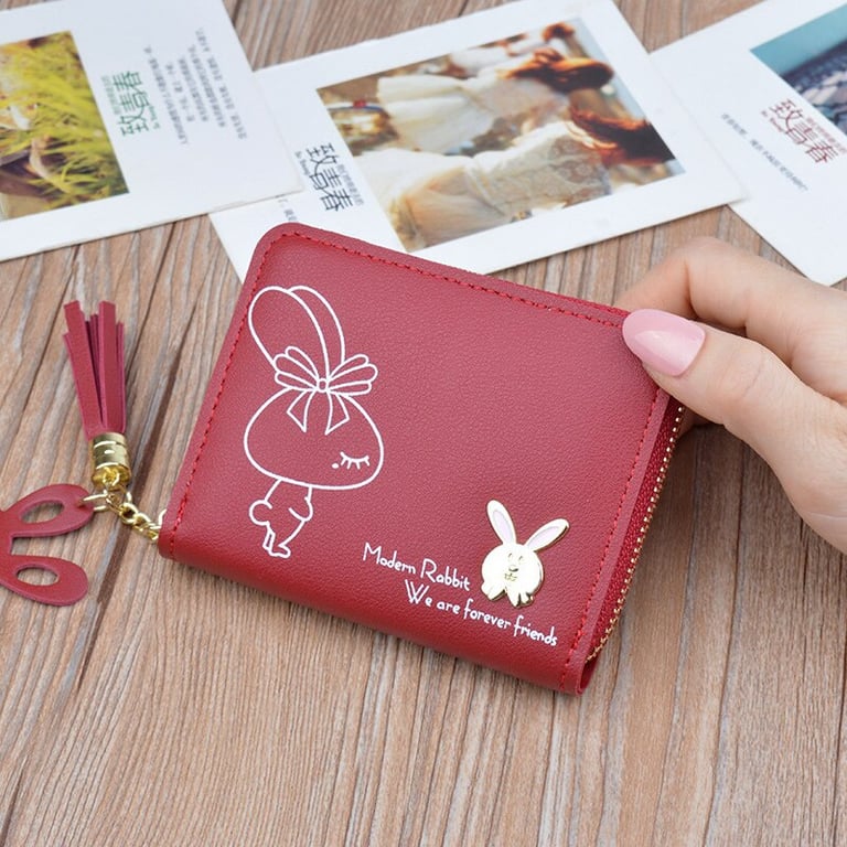 Women's faux leather wallet with a zip closure. Print with a bunny. Card slots. Coin pocket. Available in multiple colour options.