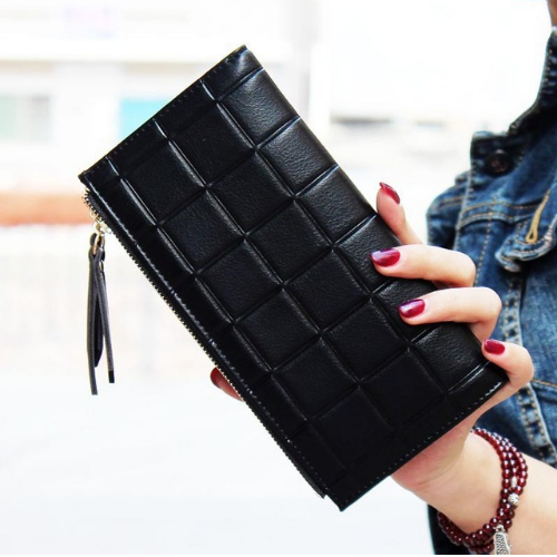 Every woman will surely appreciate this practical wallet with a modern checkered pattern.