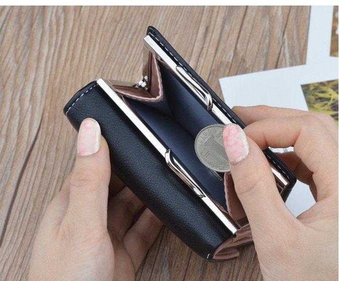 The wallet has a separate pocket for coins and for banknotes or cards.