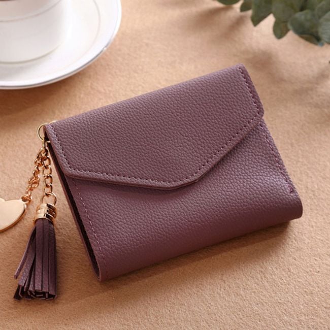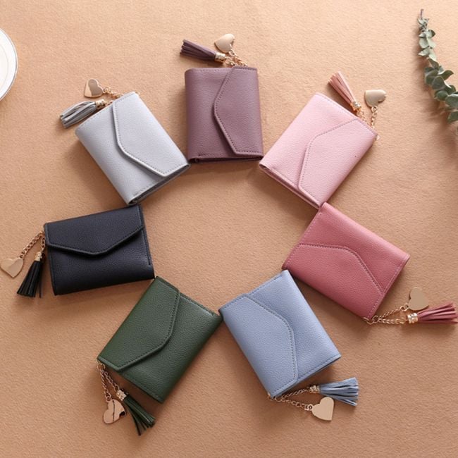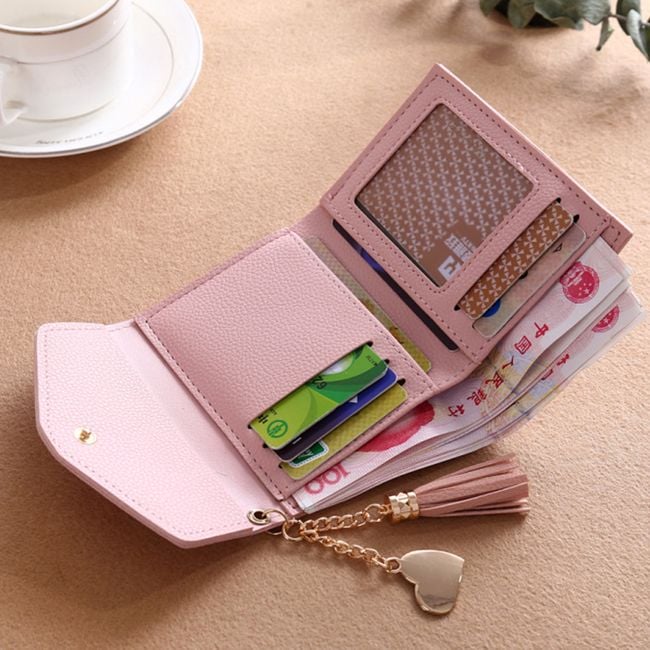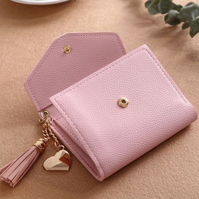 The wallet has a heart-shaped charm.