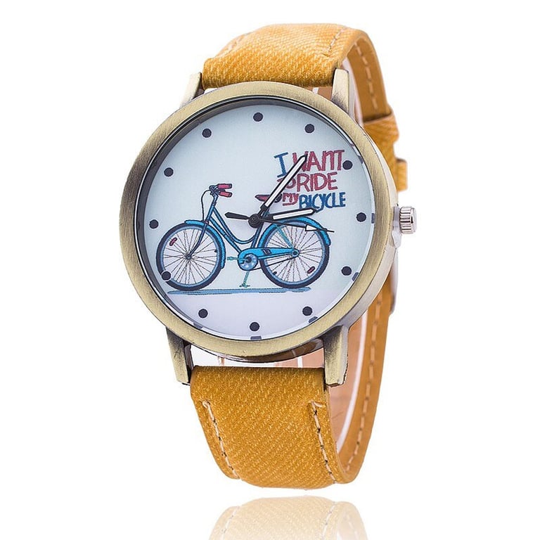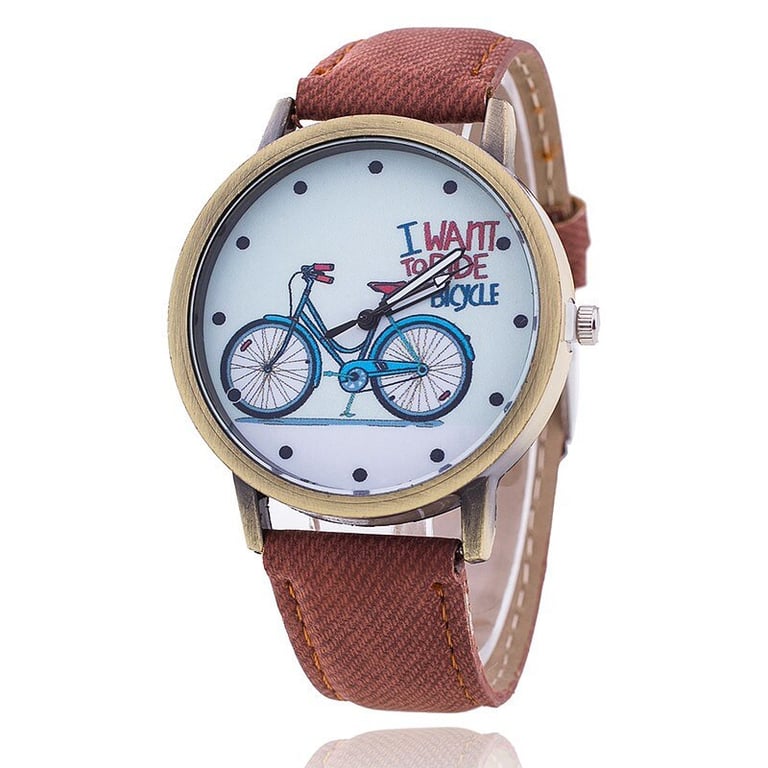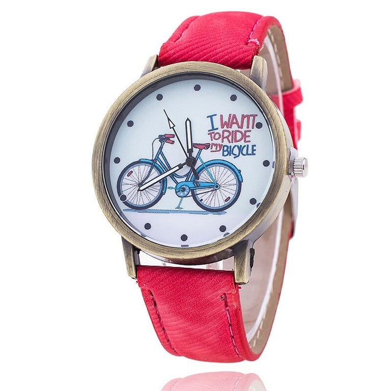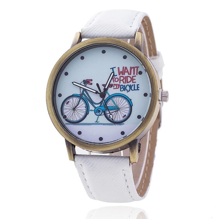 Stylish watch with a delicate wheel motif and an all-explaining text.