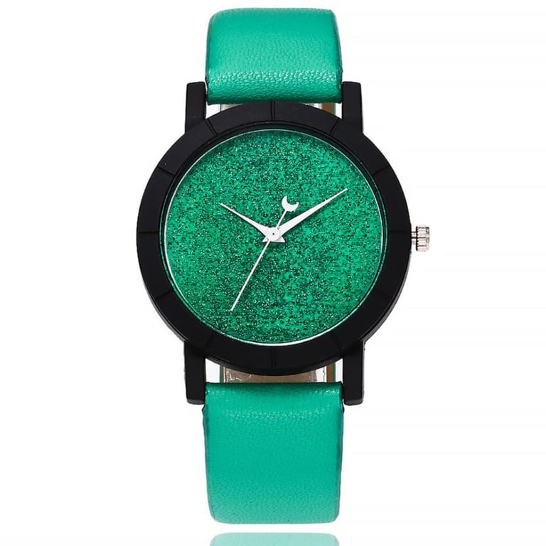 Women's watch with a leather-look strap and a black frame. Available in various colour options.