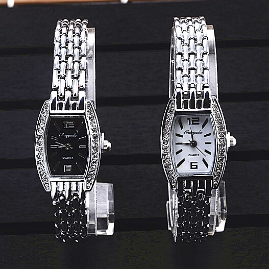 Elegant ladies' silver watch with a white dial adorned with gemstones. A version with a white dial is also available.