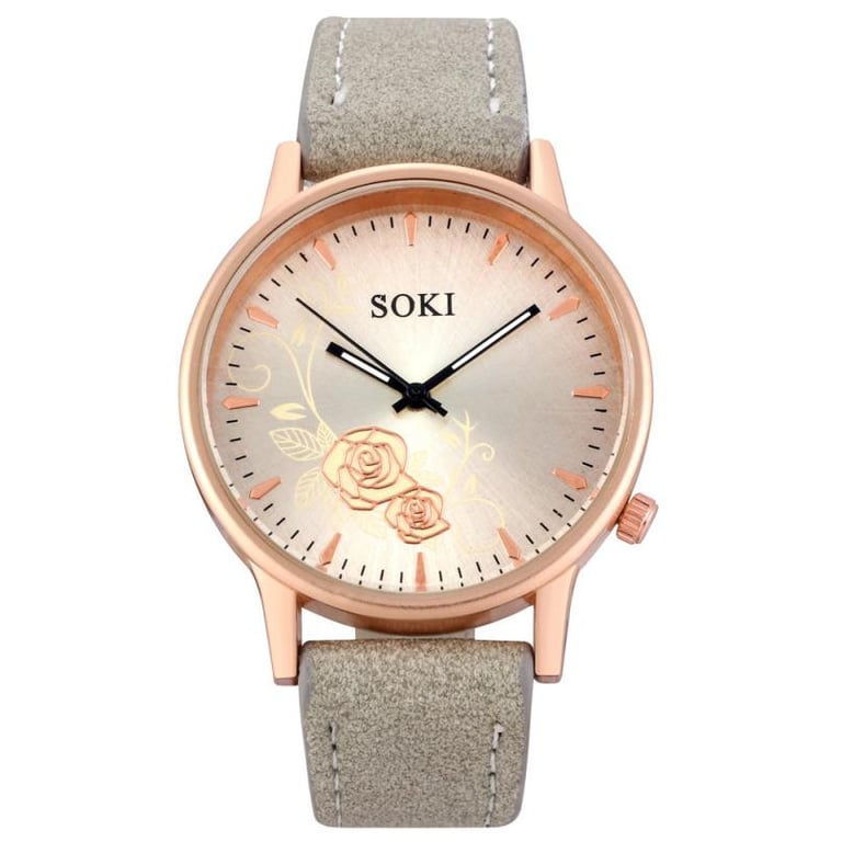 Women's watch with a leather-look strap. The dial is adorned with painted flowers. Available in several colour options.
