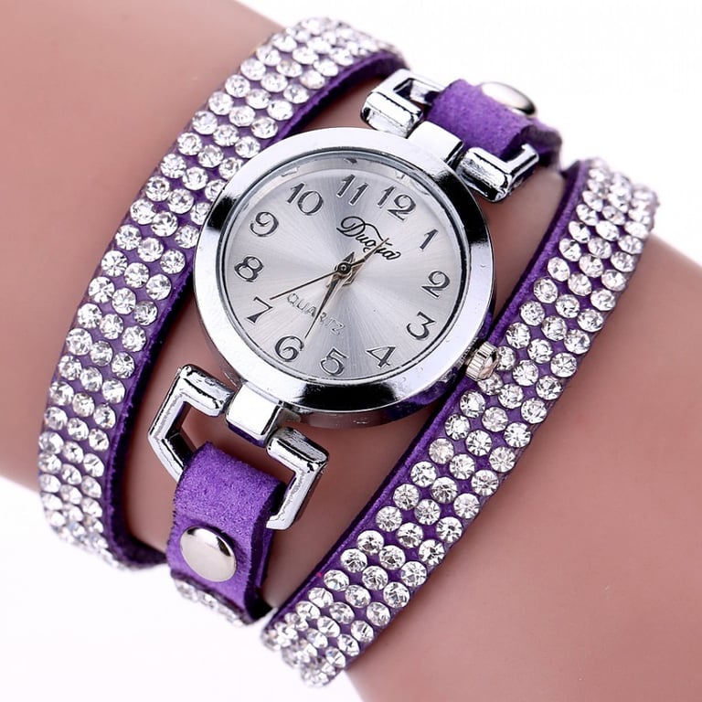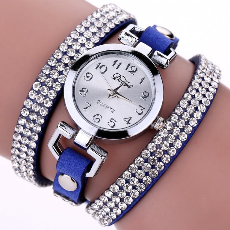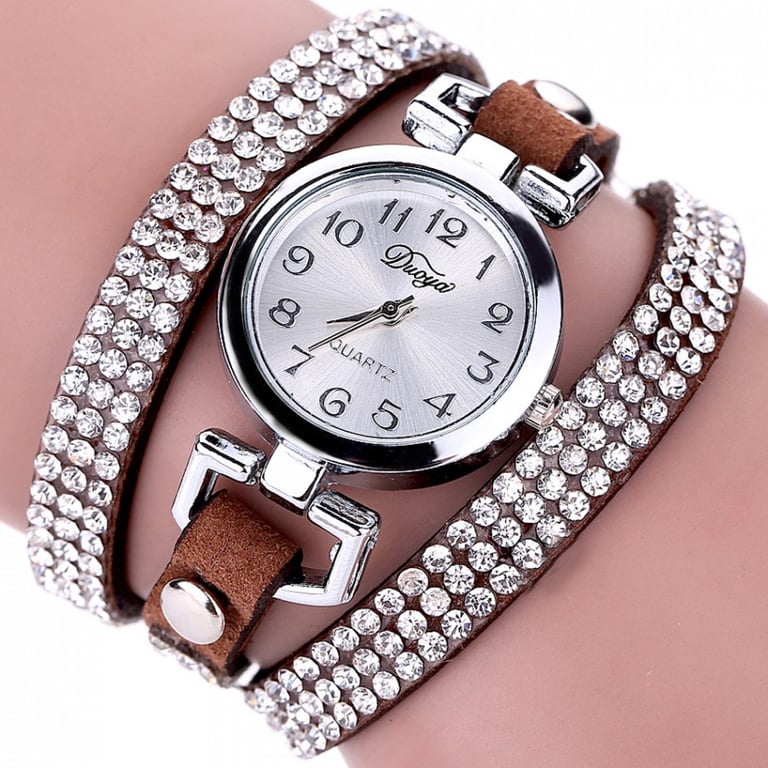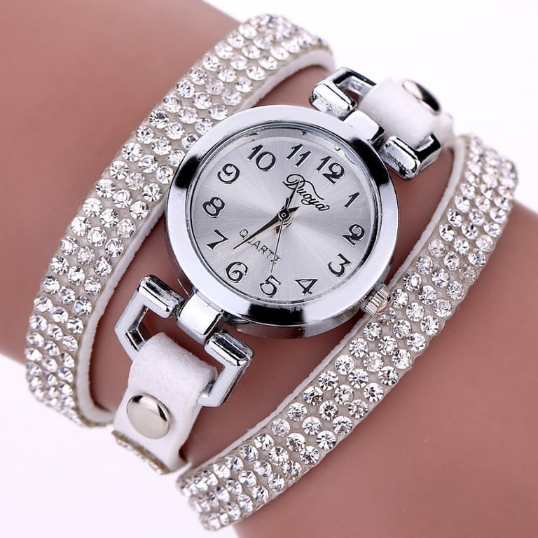 Ladies' watch with a long strap covered in gemstones.