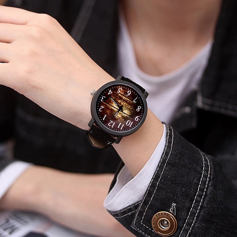 Unique women's watch, round dial, precise time, analogue numerals. Available in 2 strap colours.