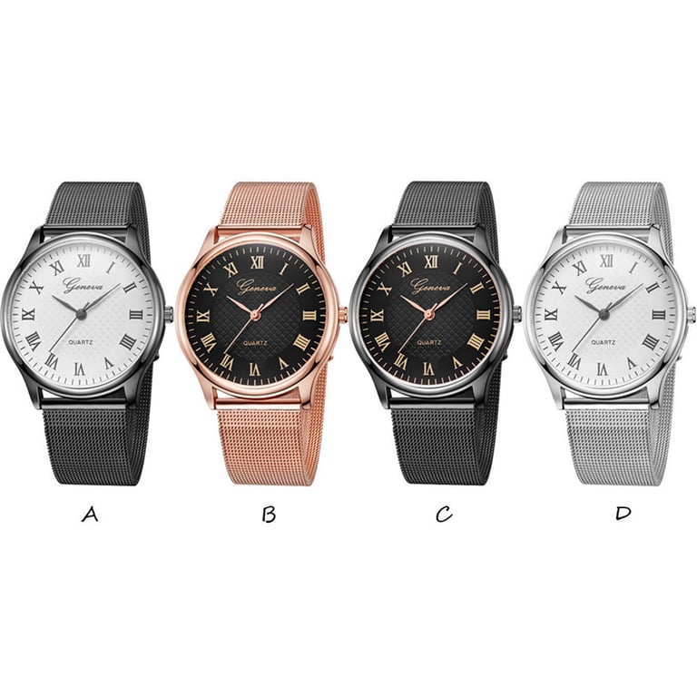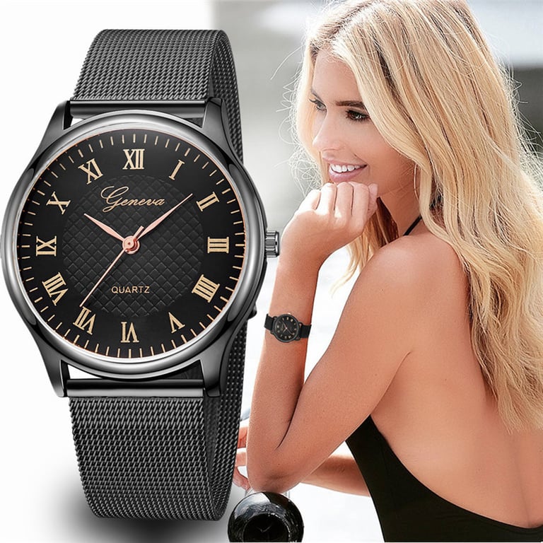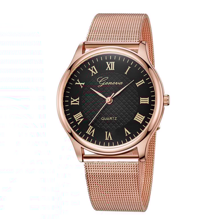 Women's elegant watch with a metal strap and a dial featuring Roman numerals. Available in several colour options.