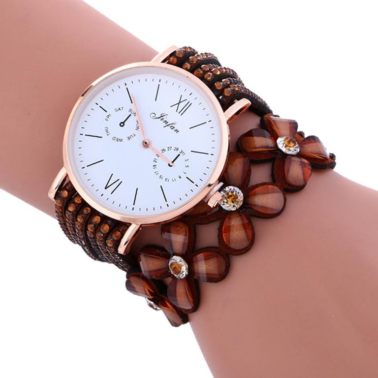 Women's wristwatch. Strap adorned with rhinestones. Dial without numbering. Available in multiple colour variants.