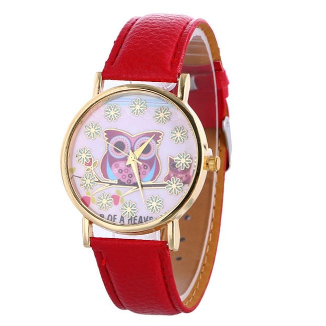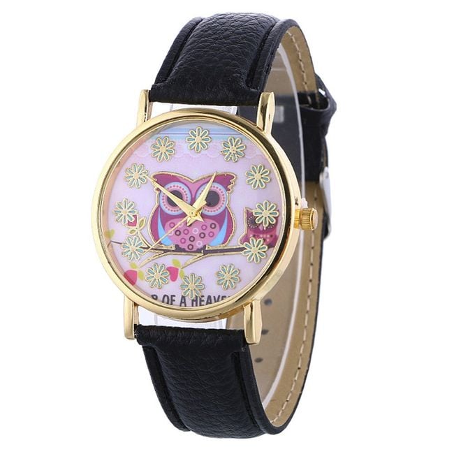 The watch features a dial adorned with a cute owl and is suitable for everyday wear.