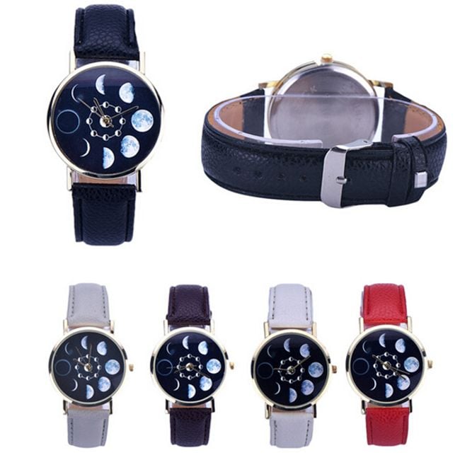 Are you looking for original watches? You’ve found them! These ladies' watches will delight any woman. The dial features an unusual motif of moon phases, creating a very nice impression. The watch strap is made of artificial leather. You can choose from several colours.
