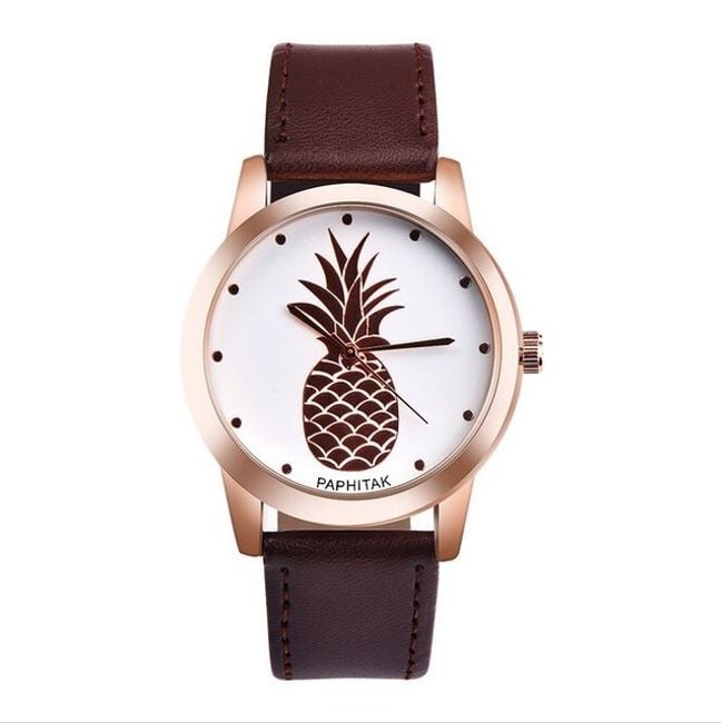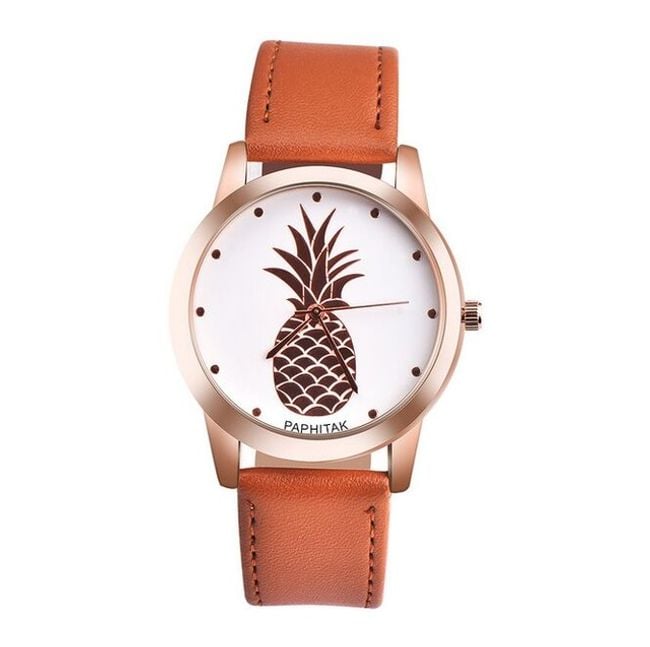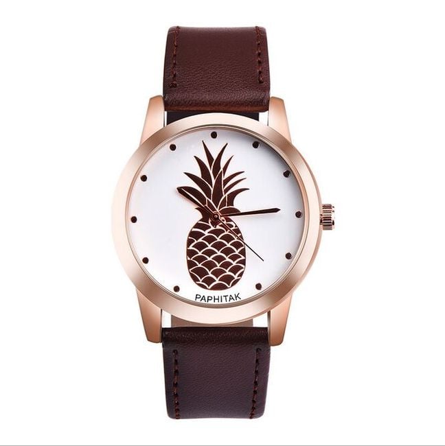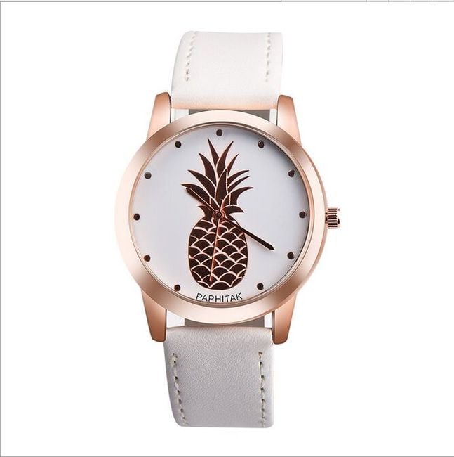 The watch features a pineapple on the dial and makes a great gift.